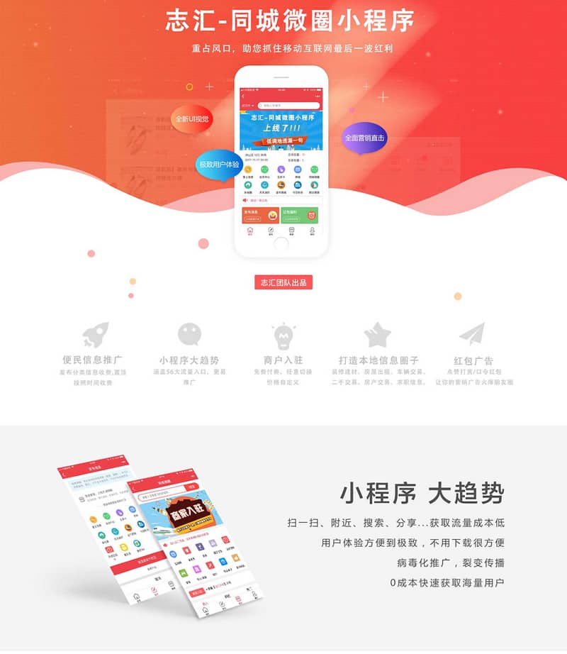叮咚(志汇)同城微圈小程序是一款便民本地分类信息同城小程序,志汇-同城微圈小程序新增商城自提功能,程序更加强大了!本资源配置有详细的配置教程,包含小程序配置、微信支付配置等详细教程!!!