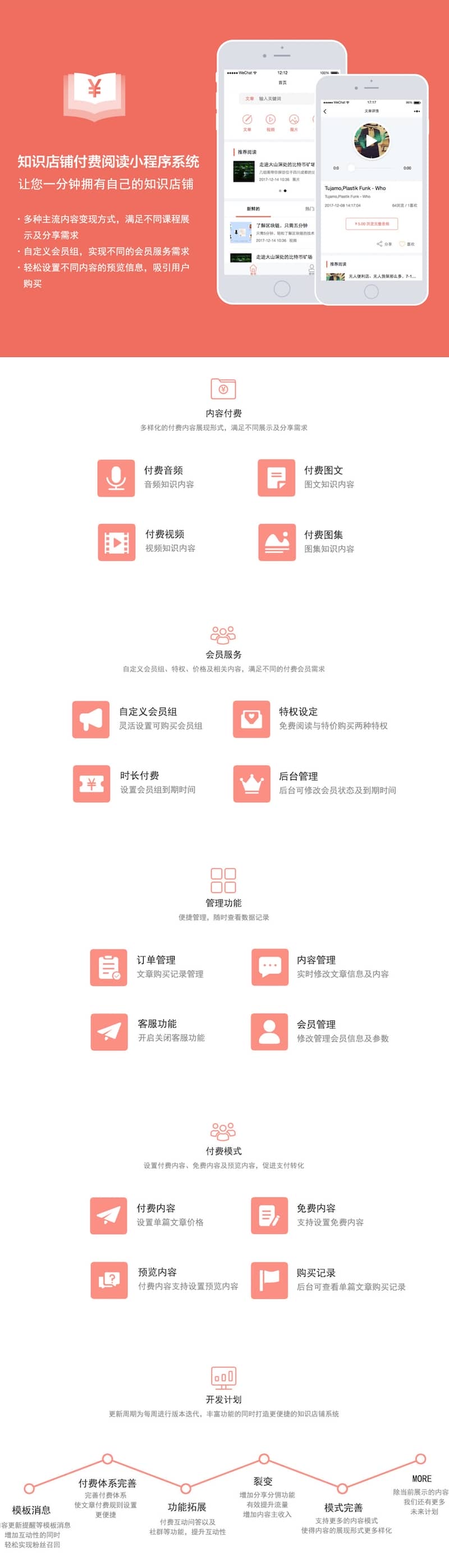 多样化的付费内容展现形式,满足不同展示及分享需求,付费图文、付费音频、付费视频、付费图集。