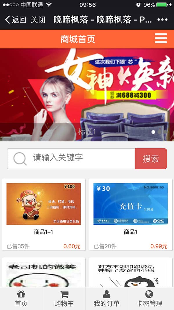 2、完善的虚拟卡购物流程和购物车、订单管理功能;