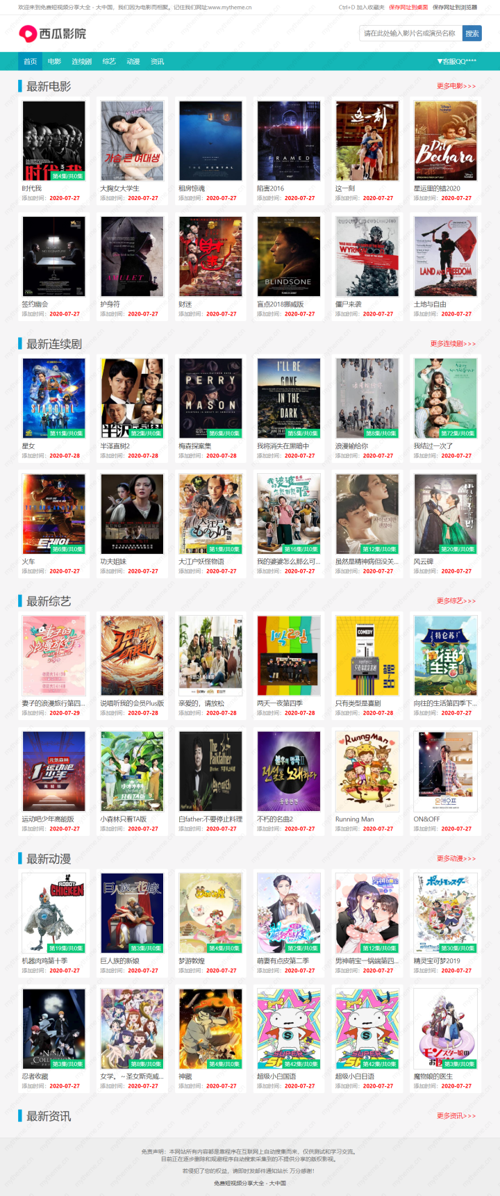 仿西瓜影院电脑手机影视网站源码苹果cmsv10自适应模板