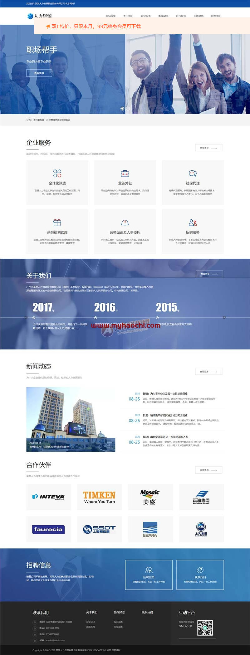 (自适应手机端)响应式人力资源服务类网站源码企业管理网站pbootcms模板